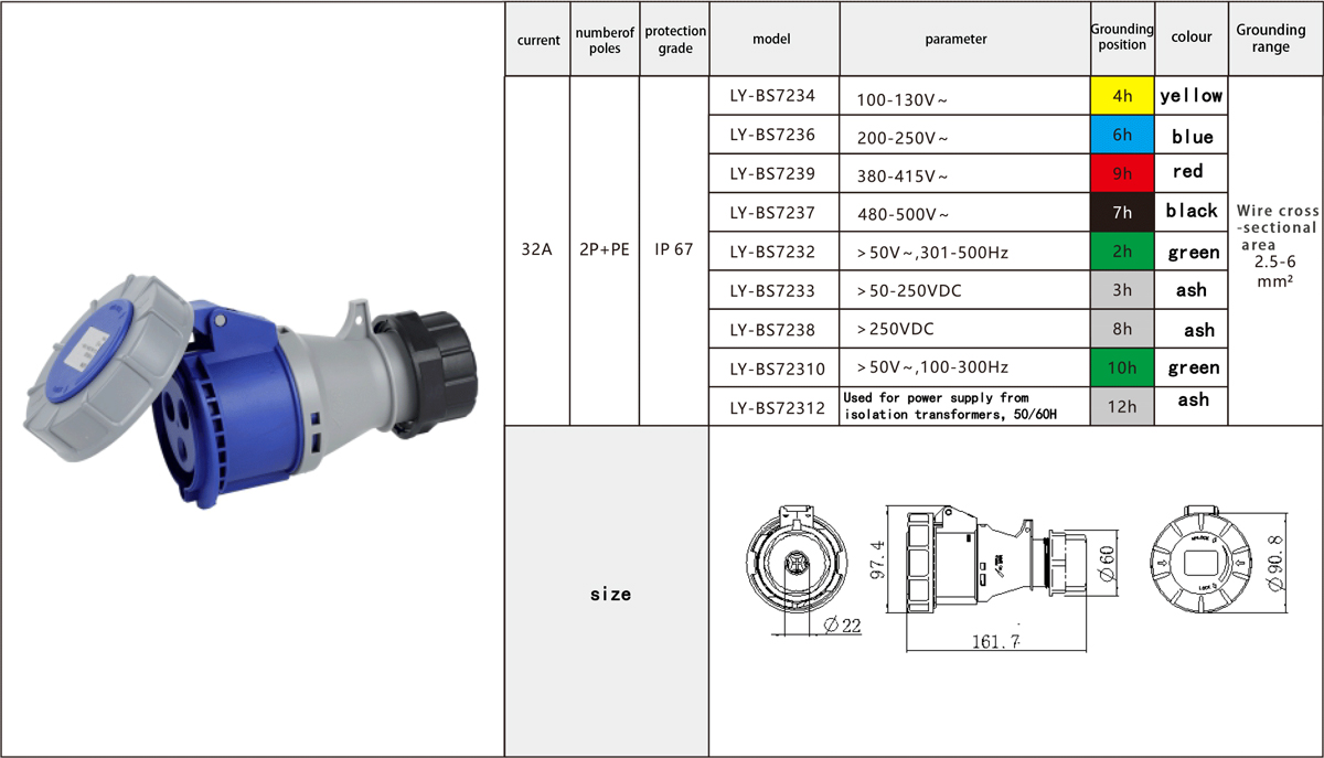 成为第一个“2P+PE 32A Coupler IP67” 的评价者