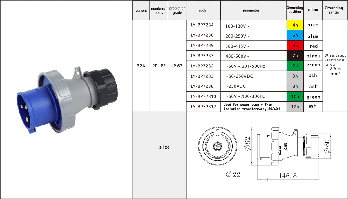 成为第一个“2P+PE 32A Plug IP67” 的评价者