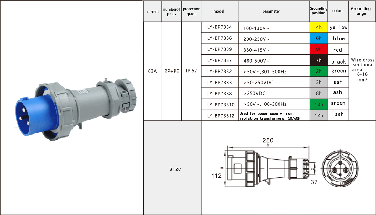 成为第一个“2P+PE 63A Plug IP67” 的评价者
